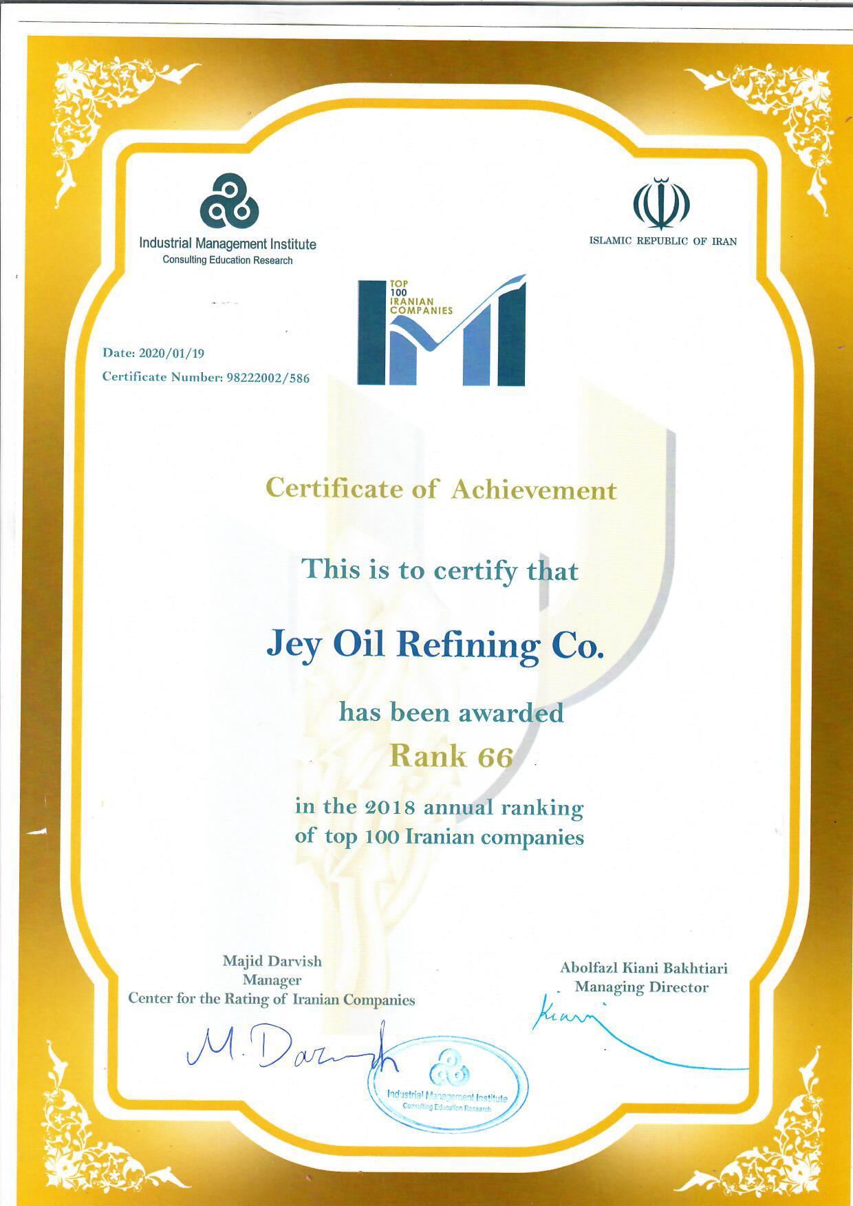 استانداردها و عناوین کسب شده شرکت پالایش نفت جی